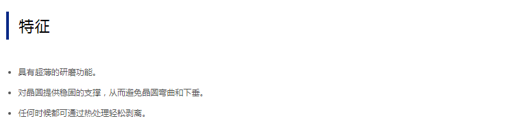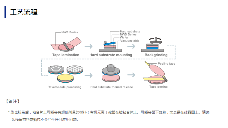 低粘合力剥离且能有效减少紫外线。 出色的性能支持晶圆生产时的背面研磨处理。