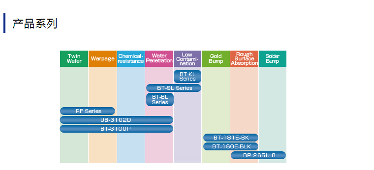 低粘合力剥离且能有效减少紫外线。 出色的性能支持晶圆生产时的背面研磨处理。