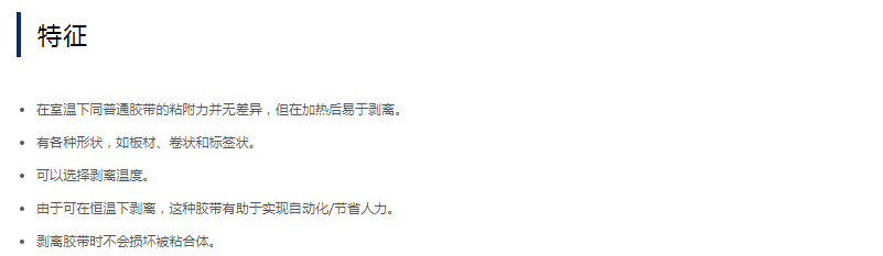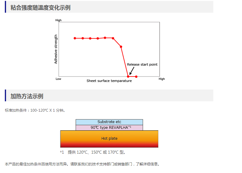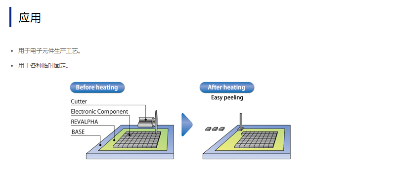 粘合牢固、受热后易于剥离;用于临时固定的理想产品。