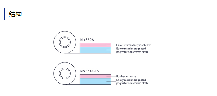 无纺布复合衬底和聚合物薄膜上涂有丙烯酸粘剂的高绝缘性胶带。适合包覆线圈外部。