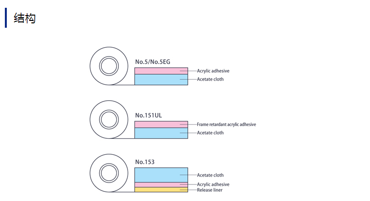 高弹性醋酸纤维胶带 No.5 / No.5EG / No.151UL / No.153