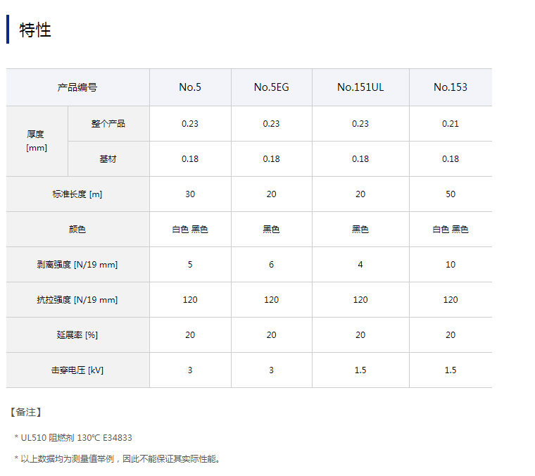 No. 151UL 为 UL 认证的阻燃胶带。这种胶带用于电气和电子设备绝缘以及保护或捆绑线束或者使线束绝缘等。