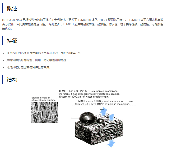空气过滤器用氟塑料多孔膜 TEMISH? NTF9000 Series