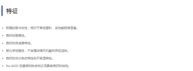 No. 443 和 No. 4430 为压敏胶带,其离型纸以超高分子量聚乙烯薄膜为基底 (No. 440)。 相对于采用其他塑料薄膜的胶带来说,此款胶带具有极强的耐冲击性、耐候性和自润滑性。