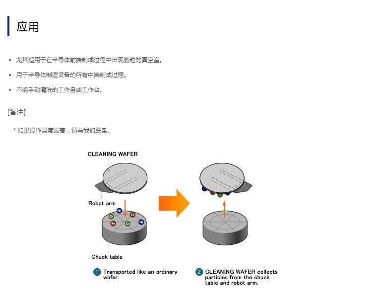 清洗晶圆的目的在于去除机械臂上的小颗粒或半导体加工设备工作盘上的小颗粒。