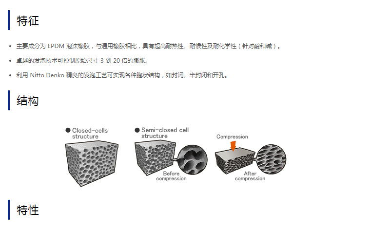 由 EPDM 化合物构成的成形密封材料发泡后为半封闭胞状结构。