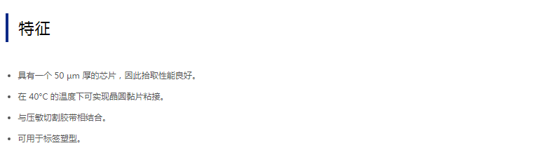 低粘合力剥离且能有效减少紫外线。 出色的性能支持晶圆生产时的切割过程。