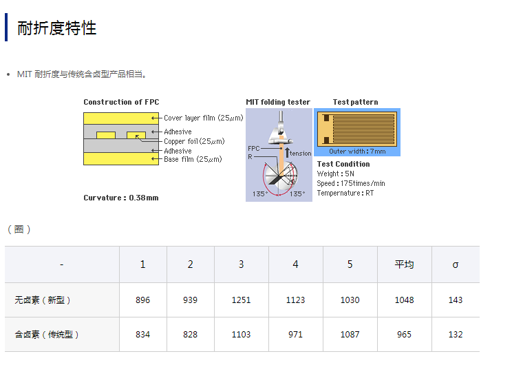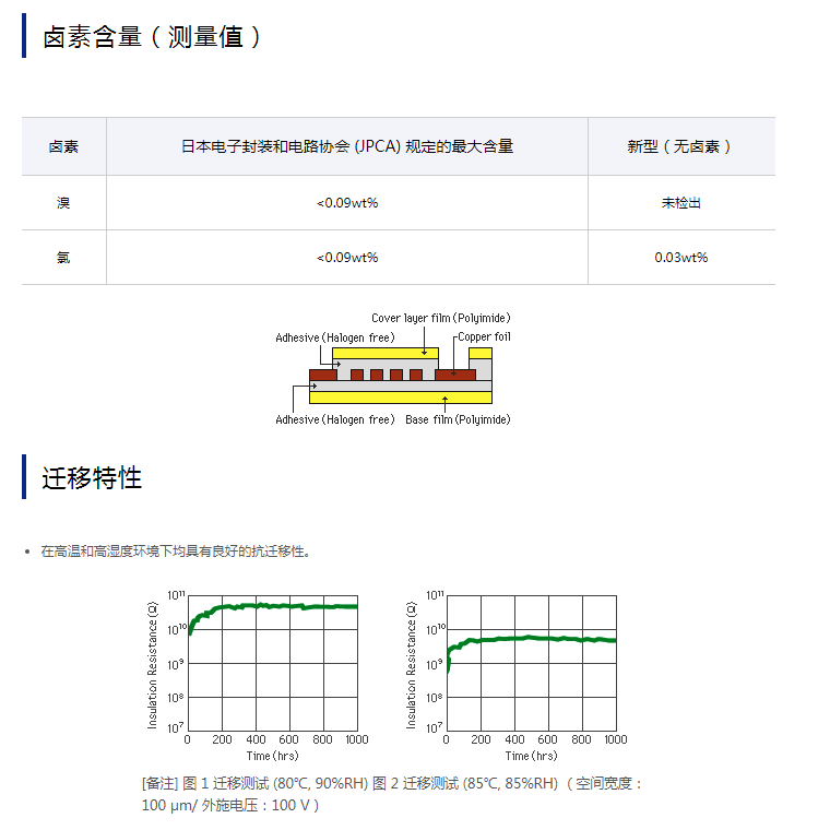 具有较高的阻燃性(符合 UL94VTM-O 标准)且未使用卤或锑作为阻燃剂的环保型无卤素 FPC。