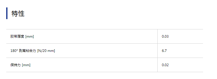 由改性压敏丙烯酸粘合剂制成的转移胶带,在表面能量低的被粘合体若需要特别高的粘合性时,该胶带可用作一般泡棉胶带进行粘贴。