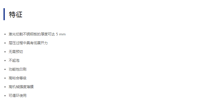 SPV-AM-500 是一种以特殊薄膜为基材的表面保护材料,可用于金属板加工。 SPV-AM-500 可用于冲床加工 (NCT) 和激光加工。