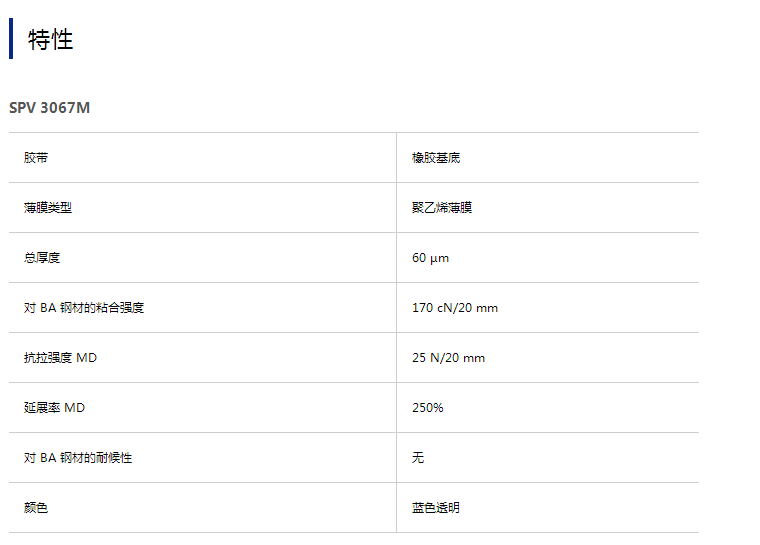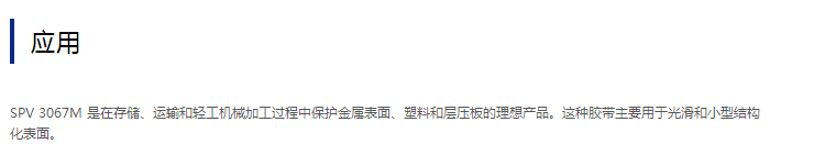 SPV 3067M 是一种适用于在机械加工、存储和运输过程中保护金属表面、涂漆板、塑料和层压板的表面保护胶带。