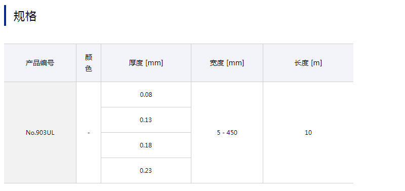 在聚四氟乙烯 (PTFE) 分散液中浸渍并经烧结的玻璃布基材。该胶带为单表面处理胶带,涂有耐热性和机械强度较强的硅树脂粘合剂。