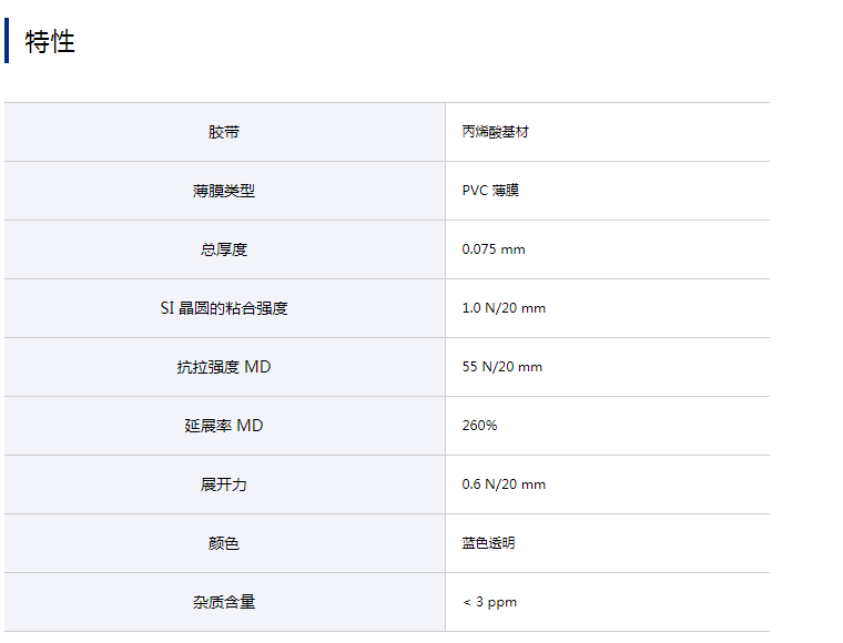 低粘合力剥离且能有效减少紫外线。 出色的性能支持晶圆生产时的切割过程。