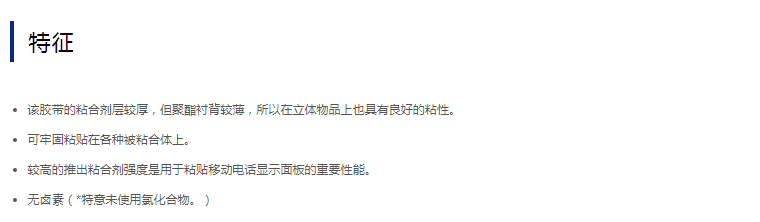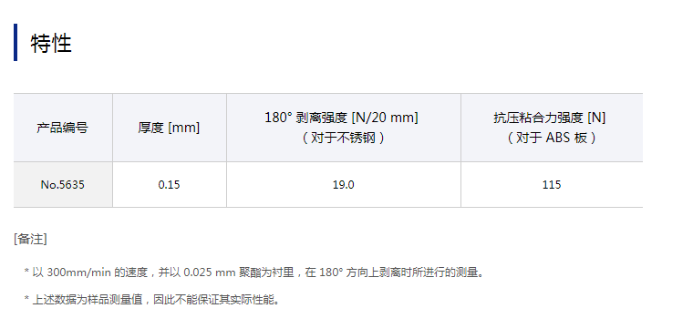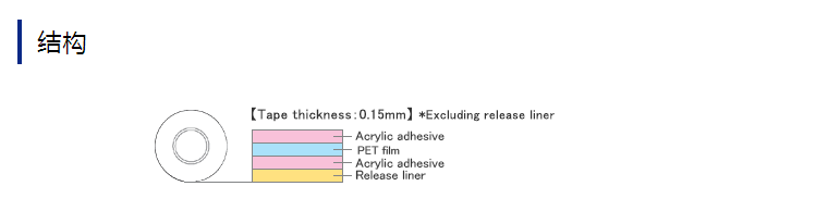 由改性压敏丙烯酸粘合剂制成的转移胶带,在表面能量低的被粘合体若需要特别高的粘合性时,该胶带可用作一般泡棉胶带进行粘贴。